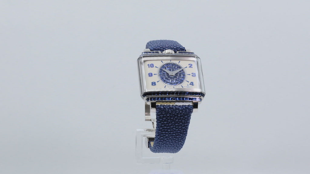 Off White Dial Set with Baguette Cut Blue Sapphires